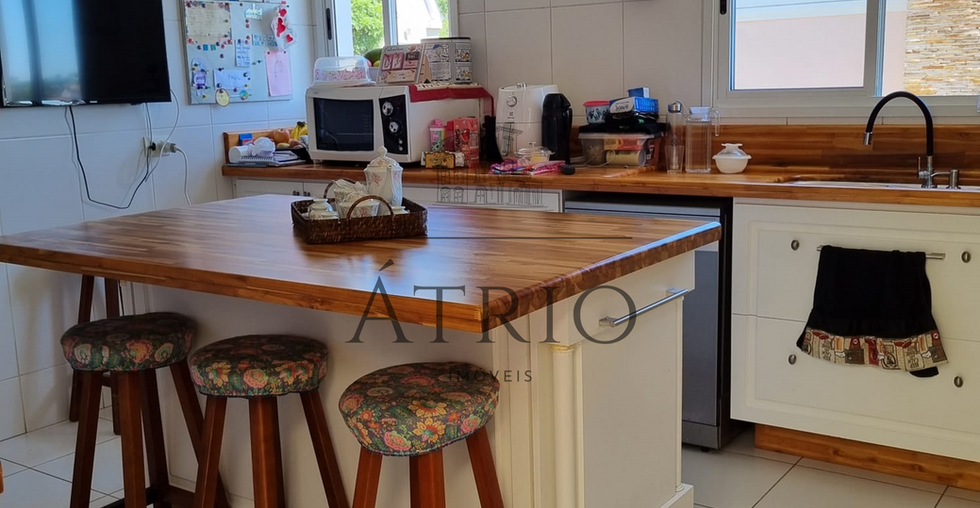 Cozinha com armários; uma área com pergolado para um bom churrasco em família, sendo churrasqueira portátil;